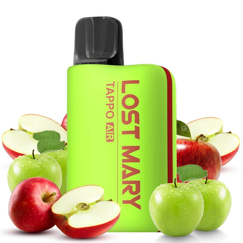 El kit Tappo Air + Double Apple Pro Pod de Lost Mary ofrece una solución de vapeo atractiva y cómoda, gracias su inhalación automática y a su sistema de pods desechables precargados con tecnología Quaq Mesh y Cell, que ofrece un calentamiento óptimo y un sabor homogéneo. Este kit incorpora un pod precargado con sabor a manzanas verdes y rojas.