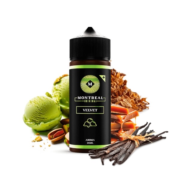 Montreal Original Velvet 24ml. Descubre el nuevo sabor de Montreal Original, que combina la robustez del tabaco avainillado secado al sol con la dulzura cremosa de un helado de pistacho artesanal, coronado con un suave toque de caramelo dorado. Perfecto para quienes buscan un equilibrio entre lo dulce y lo clásico, este e-liquid ofrece una profundidad de sabor que se disfruta tanto en momentos de relax como en cualquier ocasión especial.
